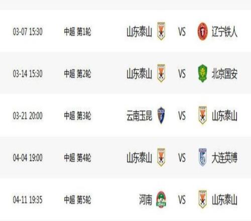第三轮泰山客场挑战云南玉昆,高原客场难度较大,对手阵容补强,新帅乔迪注重进攻,泰山以稳为主,避免客场失利。第四轮主场对阵大连英博,泰山虽然阵容优势明显,但对手引进了斯坦丘、阿奇姆彭,不可小觑,主场力争3分。第五轮客场挑战河南,客场作战力求不败,保底1分。