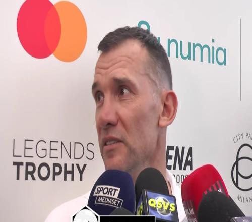 米兰传奇名宿安德烈-舍甫琴科在米兰举行的“传奇奖杯”意大利站(这是一项汇聚了世界足坛众多伟大传奇人物的...